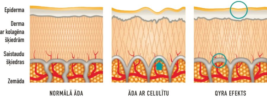Dermālā blīvuma un saistaudu uzlabošana, kā rezultātā samazinās “viļņojums” jeb “apelsīna āda”