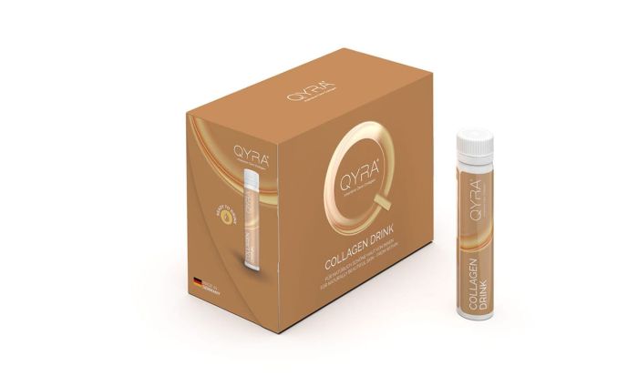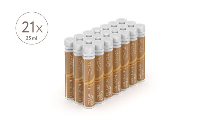 Uztura bagātinātājs ar VERISOL® kolagēna peptīdiem un vitamīniem Niacīnu, Biotīnu (ar cukuru un saldinātāju). Lietošanai gatavas dzeramās ampulas ar kolagēna peptīdiem VERISOL®, kas ir QYRA® pamatkomponents. Kolagēns ir fibrilāra olbaltumviela, kas veido organisma ādas un saistaudu pamatu. Niacīns palīdz uzturēt gļotādas un ādas veselību. Biotīns palīdz uzturēt ādas veselību un matu veselību.